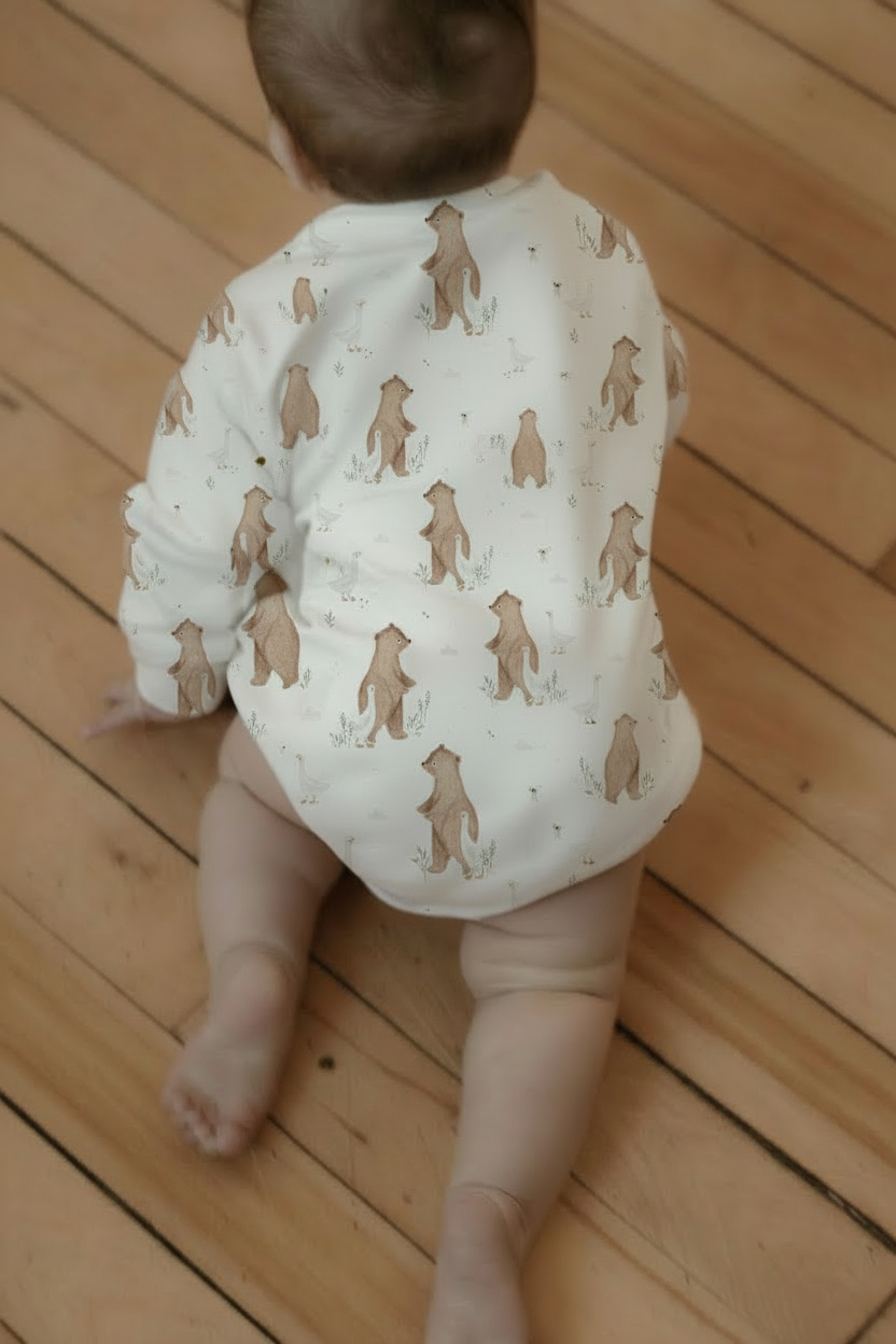 This warm sweater romper is perfect for layering or wearing on its own. Style it with leggings underneath, grow-with-me pants over top, or let those chunky thighs hang out for the cutest look. Finished with three snaps at the crotch to keep the sweater securely in place — a true customer favourite.